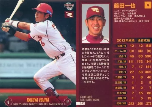 Nombre comercial en japonés: BBM/レギュラーカード/BBM2013 東北楽天ゴールデンイーグルス E43 [レギュラーカード] : 藤田一也