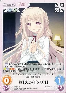 Nombre comercial en japonés: カオス/U/Chara/水風/ブースターパック 月に寄りそう乙女の作法&乙女理論とその周辺-Ecole de Paris- NV-236[U]:芽生える恋「メリル」