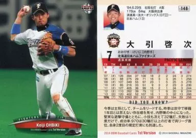 Nombre comercial en japonés: BBM/レギュラー/北海道日本ハムファイターズ/BBM2014 ベースボールカード 1stバージョン 148[レギュラー]:大引啓次