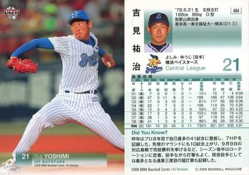 Nombre comercial en japonés: BBM/レギュラーカード/横浜ベイスターズ/BBM2009 ベースボールカード 1stバージョン 404 [レギュラーカード] : 吉見祐治