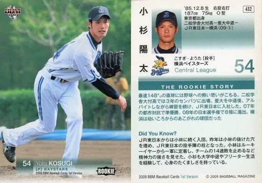 Nombre comercial en japonés: BBM/レギュラーカード/横浜ベイスターズ/BBM2009 ベースボールカード 1stバージョン 432 [レギュラーカード] : 小杉陽太