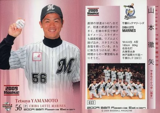 Nombre comercial en japonés: BBM/レギュラーカード/ルーキー/千葉ロッテマリーンズ/BBM2009 ベースボールカード ルーキーエディション 022 [レギュラーカード] : 山本徹矢