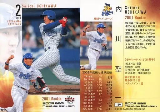 Nombre comercial en japonés: BBM/レギュラーカード/現役主力/横浜ベイスターズ/BBM2009 ベースボールカード ルーキーエディション 119 [レギュラーカード] : 内川聖一