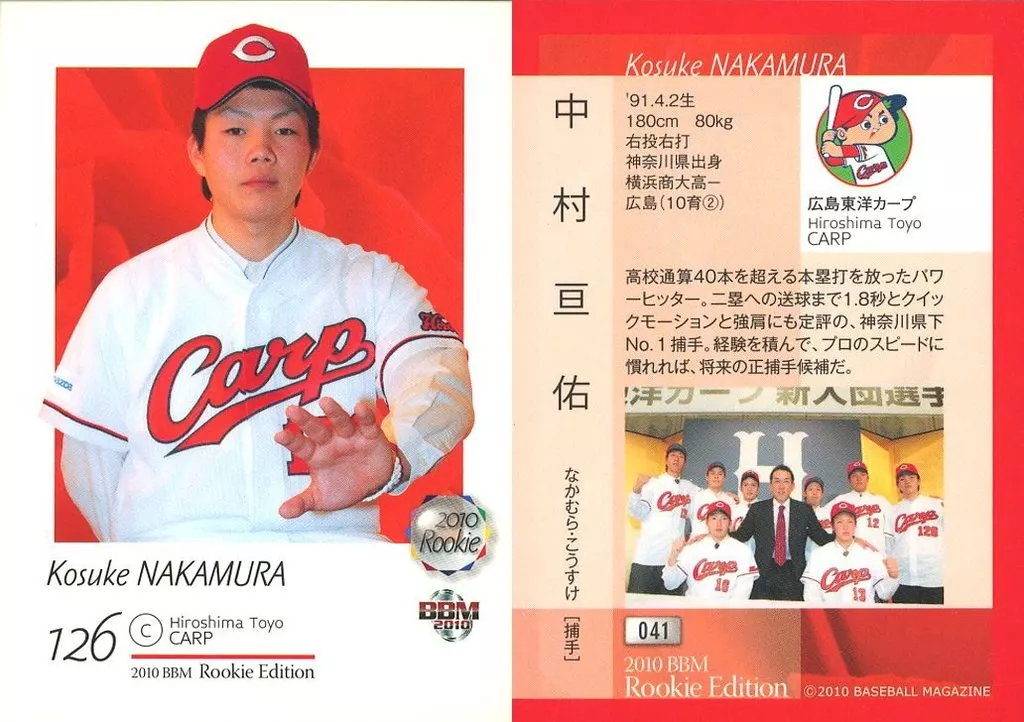 Nombre comercial en japonés: BBM/レギュラーカード/ルーキー/広島東洋カープ/BBM2010 ベースボールカード ルーキーエディション 041 [レギュラーカード] : 中村亘佑