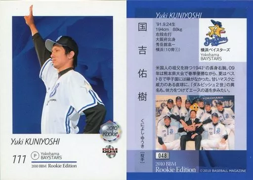 Nombre comercial en japonés: BBM/レギュラーカード/ルーキー/横浜ベイスターズ/BBM2010 ベースボールカード ルーキーエディション 048 [レギュラーカード] : 国吉佑樹