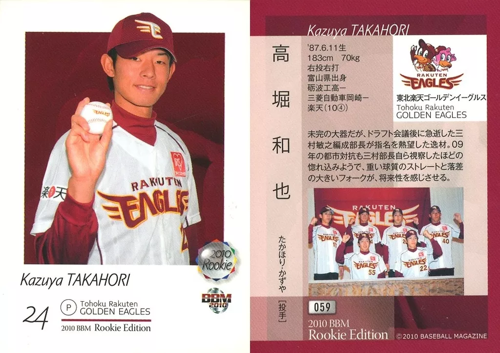 Nombre comercial en japonés: BBM/レギュラーカード/ルーキー/東北楽天ゴールデンイーグルス/BBM2010 ベースボールカード ルーキーエディション 059 [レギュラーカード] : 高堀和也