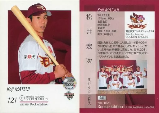 Nombre comercial en japonés: BBM/レギュラーカード/ルーキー/東北楽天ゴールデンイーグルス/BBM2010 ベースボールカード ルーキーエディション 061 [レギュラーカード] : 松井宏次