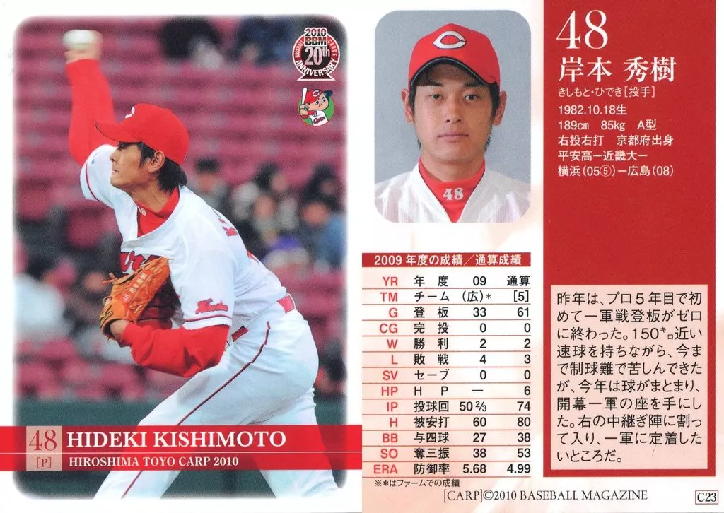 Nombre comercial en japonés: BBM/レギュラー/BBM2010 広島東洋カープ C23[レギュラー]:岸本秀樹