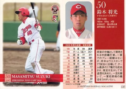 Nombre comercial en japonés: BBM/レギュラー/BBM2010 広島東洋カープ C67[レギュラー]:鈴木将光