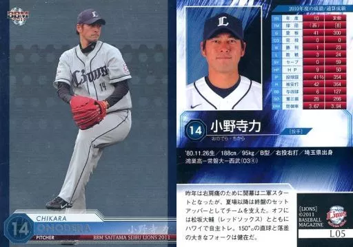 Nombre comercial en japonés: BBM/レギュラー/BBM2011 埼玉西武ライオンズ L05[レギュラー]:小野寺力(キラパラレル版)