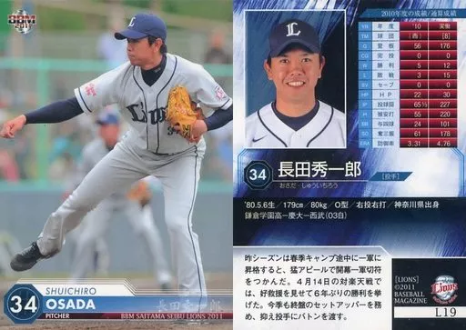 Nombre comercial en japonés: BBM/レギュラー/BBM2011 埼玉西武ライオンズ L19[レギュラー]:長田秀一郎