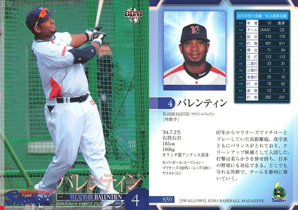 Nombre comercial en japonés: BBM/レギュラー/BBM2011 東京ヤクルトスワローズ S59[レギュラー]:バレンティン
