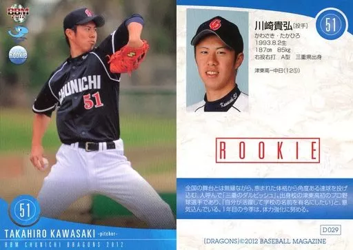 Nombre comercial en japonés: BBM/レギュラー/BBM2012 中日ドラゴンズ D029[レギュラー]:川崎貴弘