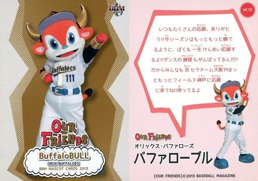 Nombre comercial en japonés: BBM/レギュラー/オリックス・バファローズ/BBM2013 マスコットカード OUR FRIENDS MC78[レギュラー]:バファローブル