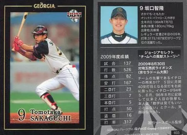 Nombre comercial en japonés: BBM/オリックス・バファローズ/BBM2010 ジョージア限定ベースボールカード 035 : 坂口智隆