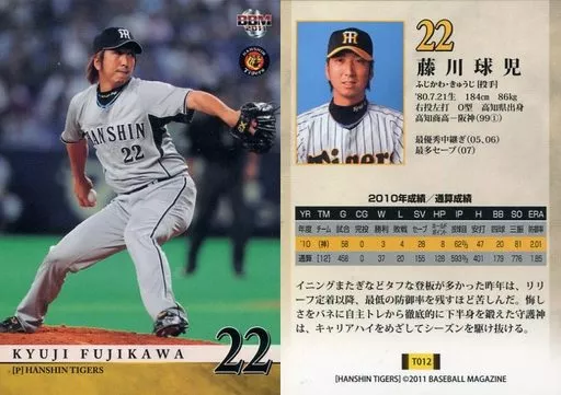 Nombre comercial en japonés: BBM/レギュラー/BBM2011 阪神タイガース T012[レギュラー]:藤川球児