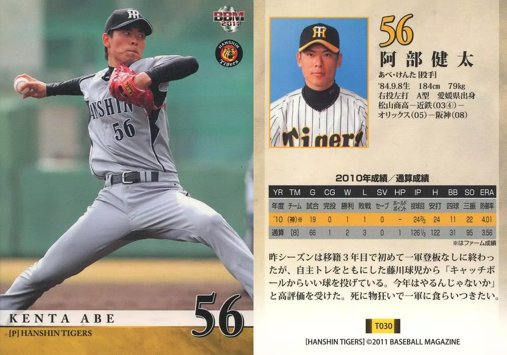 Nombre comercial en japonés: BBM/レギュラー/BBM2011 阪神タイガース T030[レギュラー]:阿部健太