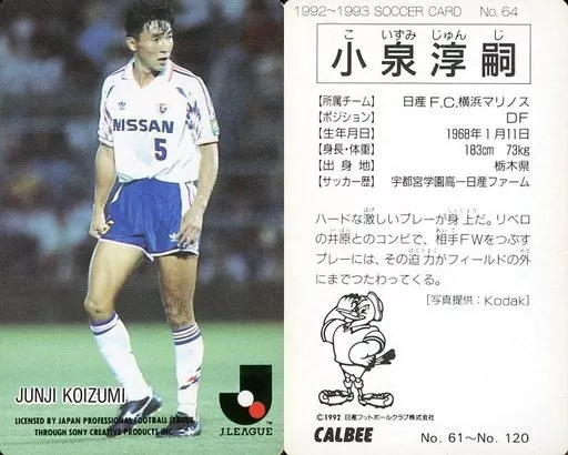 Nombre comercial en japonés: スポーツ/Jリーグ選手カード/Jリーグチップス1992~1993/横浜マリノス 64 [Jリーグ選手カード] : 小泉淳嗣