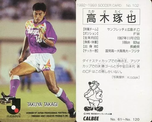 Nombre comercial en japonés: スポーツ/Jリーグ選手カード/Jリーグチップス1992~1993/浦和レッドダイヤモンズ 102 [Jリーグ選手カード] : 高木琢也
