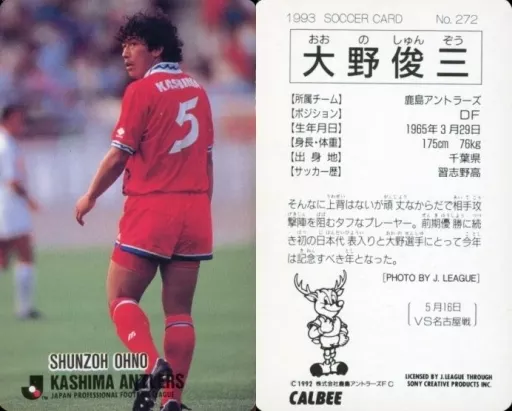 Sports/J. League Players Card/J. League Chips 1992 ~ 1993 / Kashima Antlers 272 [J. League Player Card] : Shunzō Ono