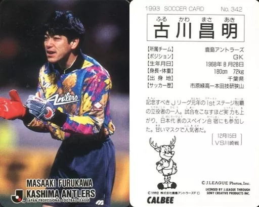 Nombre comercial en japonés: スポーツ/Jリーグ選手カード/Jリーグチップス1992~1993/鹿島アントラーズ 342 [Jリーグ選手カード] : 古川昌明