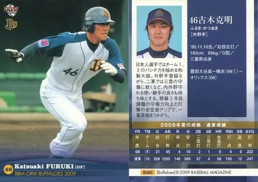 Nombre comercial en japonés: BBM/レギュラー/BBM2009 オリックス・バファローズ Bs65[レギュラー]:古木克明
