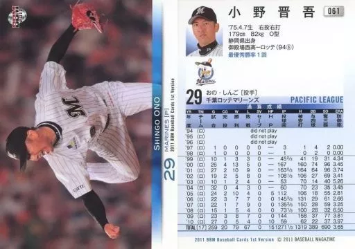 Nombre comercial en japonés: BBM/レギュラー/千葉ロッテマリーンズ/BBM2011 ベースボールカード 1stバージョン 061[レギュラー]:小野晋吾