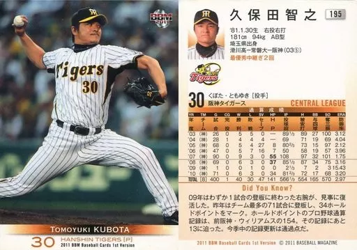 Nombre comercial en japonés: BBM/レギュラー/阪神タイガース/BBM2011 ベースボールカード 1stバージョン 195[レギュラー]:久保田智之