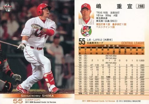 Nombre comercial en japonés: BBM/レギュラー/広島東洋カープ/BBM2011 ベースボールカード 1stバージョン 290[レギュラー]:嶋重宣