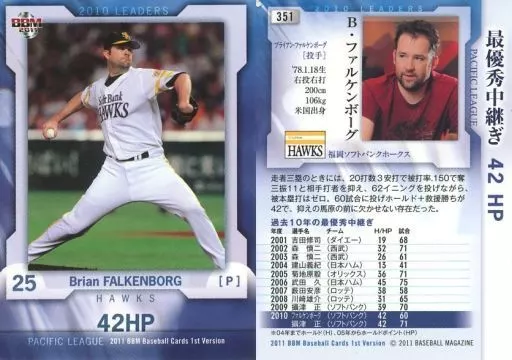 Nombre comercial en japonés: BBM/レギュラー/2010リーダース/福岡ソフトバンクホークス/BBM2011 ベースボールカード 1stバージョン 351[レギュラー]:ファルケンボーグ