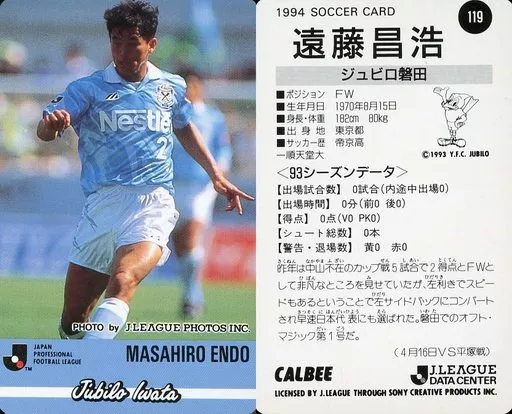 Nombre comercial en japonés: スポーツ/Jリーグ選手カード/Jリーグチップス1994第2弾/ジュビロ磐田 119 [Jリーグ選手カード] : 遠藤 昌浩