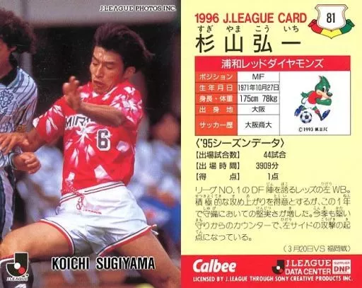 Nombre comercial en japonés: スポーツ/Jリーグ選手カード/Jリーグチップス1996/浦和レッドダイヤモンズ 81 [Jリーグ選手カード] : 杉山 弘一