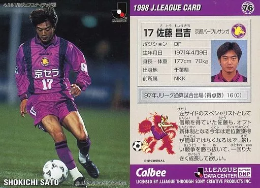 Nombre comercial en japonés: スポーツ/Jリーグ選手カード/Jリーグチップス1998/京都パープルサンガ 76 [Jリーグ選手カード] : 佐藤 昌吉