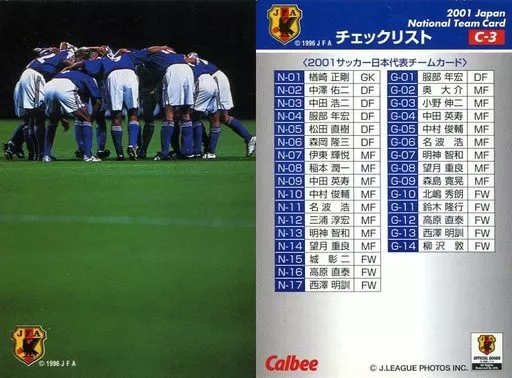 Nombre comercial en japonés: スポーツ/チェックリスト/Jリーグチップス2001第1弾 C-3 [チェックリスト] : 日本代表カードチェックリスト