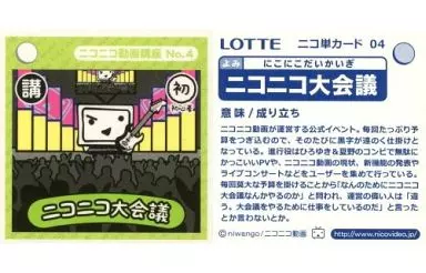 Nombre comercial en japonés: アニメ系トレカ/ニコ単カード/ニコニコ動菓 ウエハースチョコ 04[ニコ単カード]:ニコニコ大会議