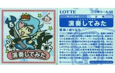 Nombre comercial en japonés: コレクションシール/ニコ単シール/ニコニコ動菓 ウエハースチョコ(弐) 10[ニコ単シール]:演奏してみた