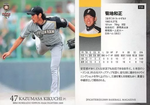 Nombre comercial en japonés: BBM/レギュラー/監督・選手・マスコットカード/BBM2009 北海道日本ハムファイターズ F25[レギュラー]:菊地和正