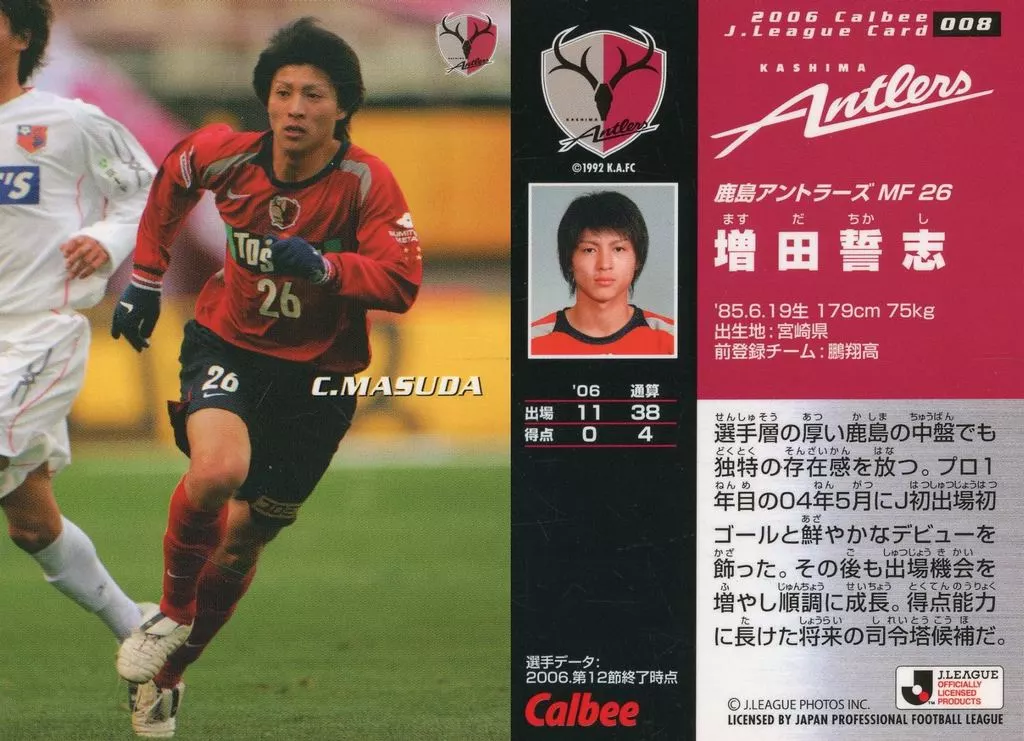Nombre comercial en japonés: スポーツ/レギュラーカード/カルビーJリーグチップス 2006 第1弾/鹿島アントラーズ 8 [レギュラーカード] : 増田 誓志