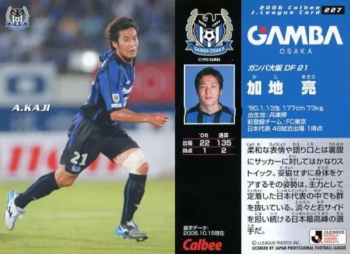 Nombre comercial en japonés: スポーツ/レギュラーカード/カルビーJリーグチップス 2006 第2弾/ガンバ大阪 227 [レギュラーカード] : 加地 亮