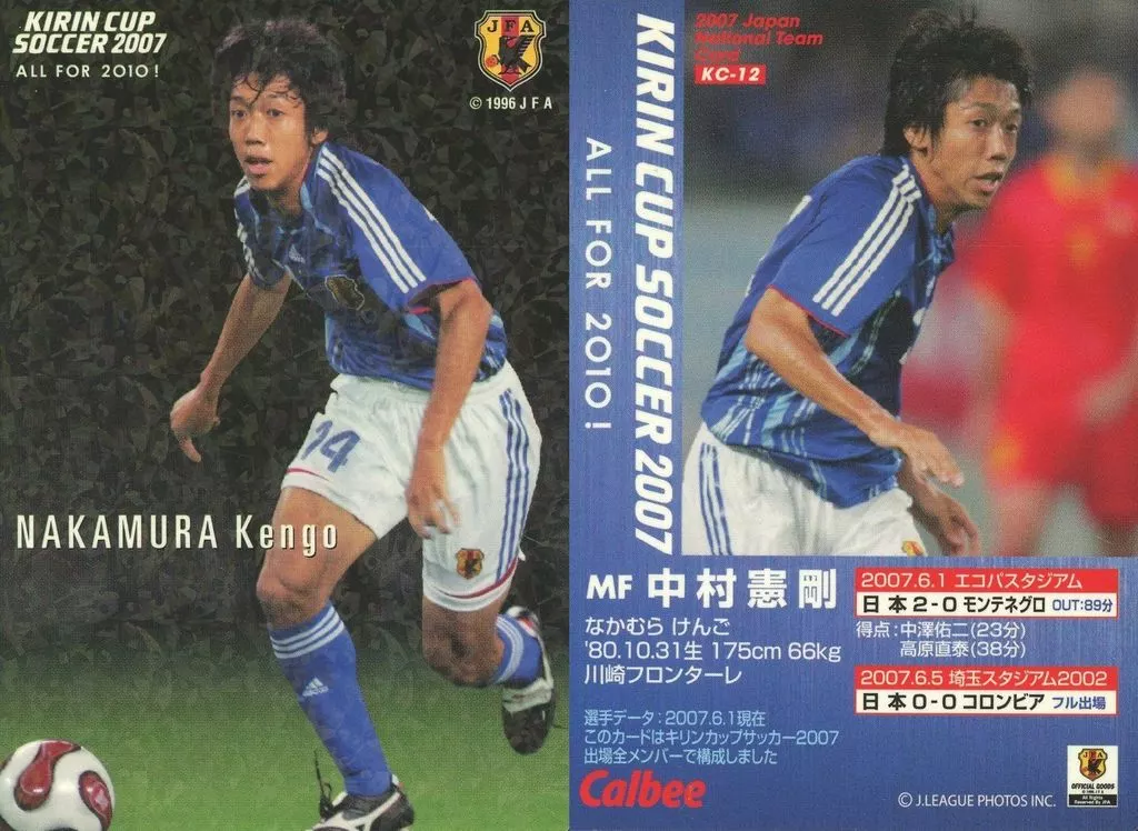 Nombre comercial en japonés: スポーツ/日本代表チームキリンカップカード/カルビーJリーグチップス 2007 第2弾/川崎フロンターレ KC-12 [日本代表チームキリンカップカード] : 中村 憲剛
