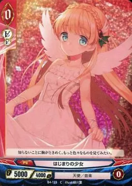 Nombre comercial en japonés: アンジュ・ヴィエルジュ/C/赤/PG/天使/音楽/ブースターパック第4章「蒼空の変転世界」 B4-123[C]:(パラレル)はじまりの少女