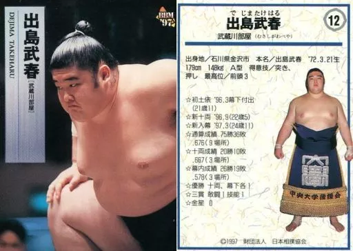 Nombre comercial en japonés: BBM/レギュラー/BBM’97 大相撲カード 12[レギュラー]:出島 武春
