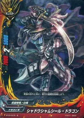 Nombre comercial en japonés: バディファイト/並/モンスター/ドラゴンW/[BF-BT03]ブースターパック第3弾「ドドド大冒険」 BT03/0076[並]:シャドウシャムシール・ドラゴン(ガチレア仕様)