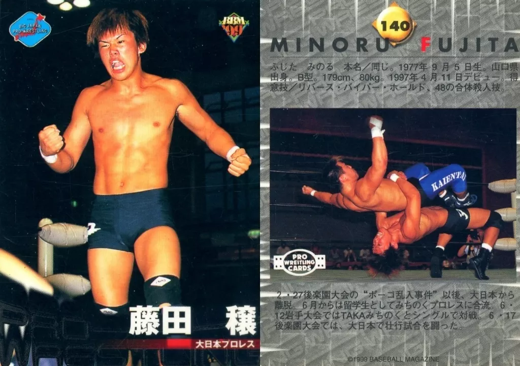 Nombre comercial en japonés: BBM/レギュラー/BBM’99 プロレスカード 140[レギュラー]:藤田 穣