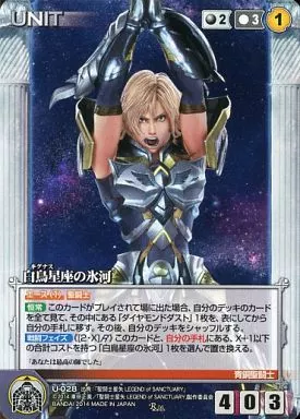 Nombre comercial en japonés: クルセイド/R/UNIT/黒/クルセイド 聖闘士星矢 LEGEND of SANCTUARY/聖闘士星矢Ω U-028[R]:白鳥星座の氷河