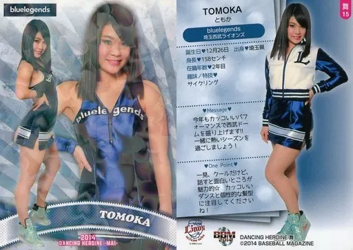 Nombre comercial en japonés: BBM/レギュラーカード/bluelegends/BBM2014 プロ野球チアリーダーカード DANCING HEROINE -舞- 舞15 [レギュラーカード] : TOMOKA(ホロパラレル版)