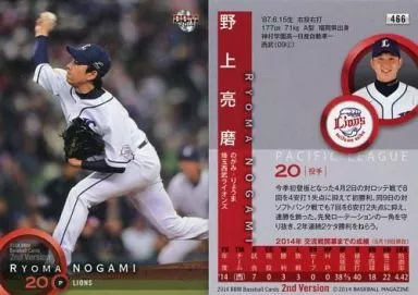 Nombre comercial en japonés: BBM/レギュラーカード/埼玉西武ライオンズ/BBM2014 ベースボールカード 2ndバージョン 466 [レギュラーカード] : 野上亮磨