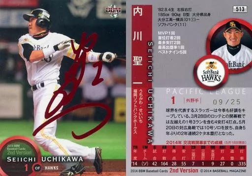 Nombre comercial en japonés: BBM/レギュラーカード/福岡ソフトバンクホークス/BBM2014 ベースボールカード 2ndバージョン 513[レギュラーカード]:内川聖一(赤箔サイン入り)(/25)