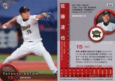 Nombre comercial en japonés: BBM/レギュラーカード/オリックス・バファローズ/BBM2014 ベースボールカード 2ndバージョン 518 [レギュラーカード] : 佐藤達也