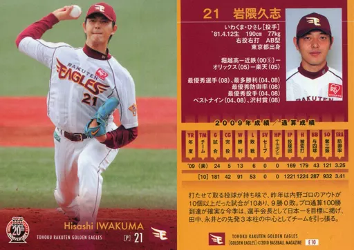 Nombre comercial en japonés: BBM/レギュラー/BBM 2010 東北楽天ゴールデンイーグルス E10[レギュラー]:岩隈久志